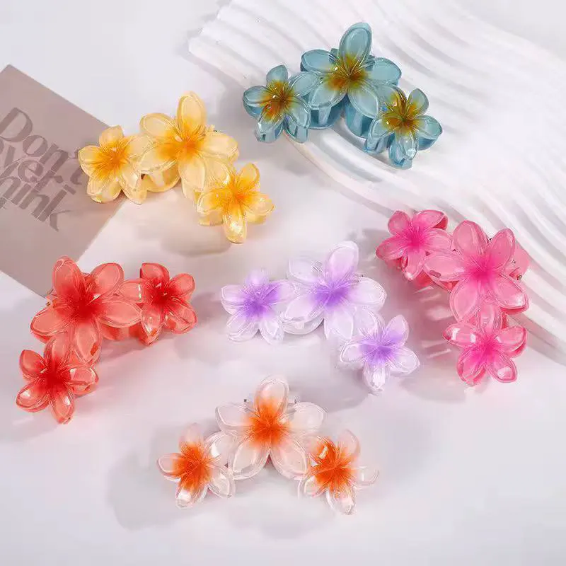 کلیپس مو پلومریا فانتزی در بسته 12 عددی با طراحی گلدار رنگی، مناسب برای استفاده روزانه و هدیه دادن، سبک و ایمن برای موهای نازک تا متوسط، با جنس پلاستیکی براق و مقاوم.